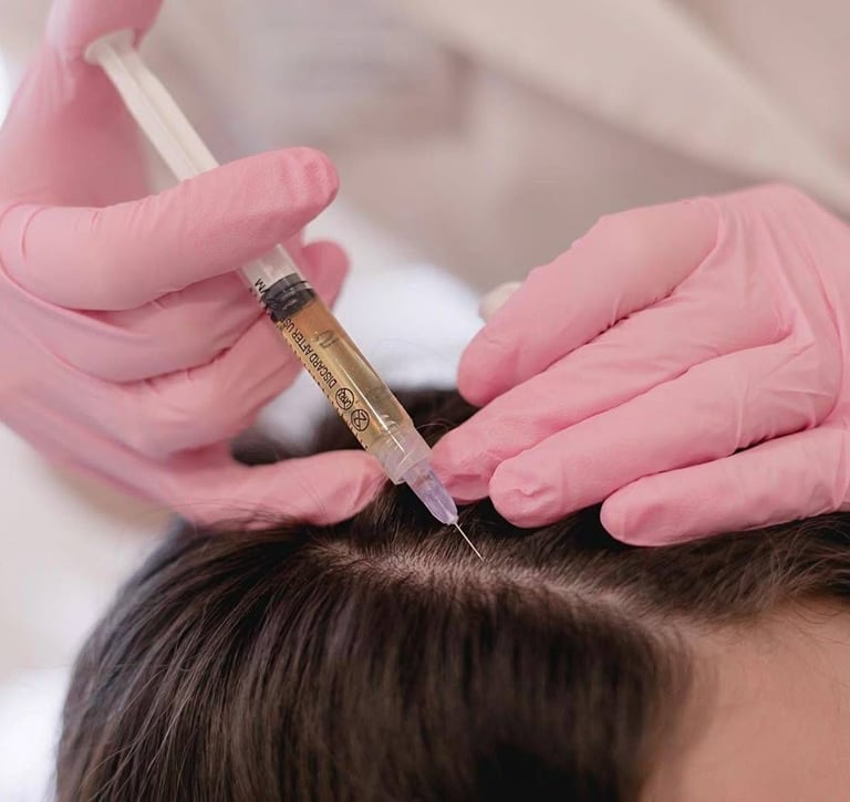 In this procedure, a small amount of the patient’s blood is processed to concentrate platelets rich in growth factors. This PRP is then injected into the scalp under medical supervision to improve blood supply, strengthen hair roots, and support new hair growth.